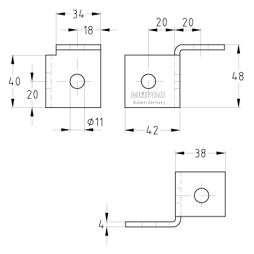 MPC-Seitenwinkel rechts 90° für Profile 38/24-40/120, verzinkt
