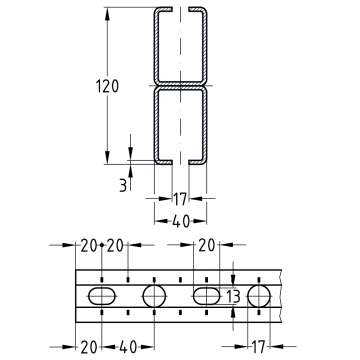 MPC-Systemschiene 40/120 H-Profil, Länge: 6.640 mm, feuerverzinkt
